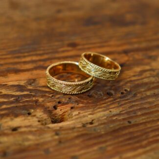 Braided wire rings in a medieval-inspired style.
