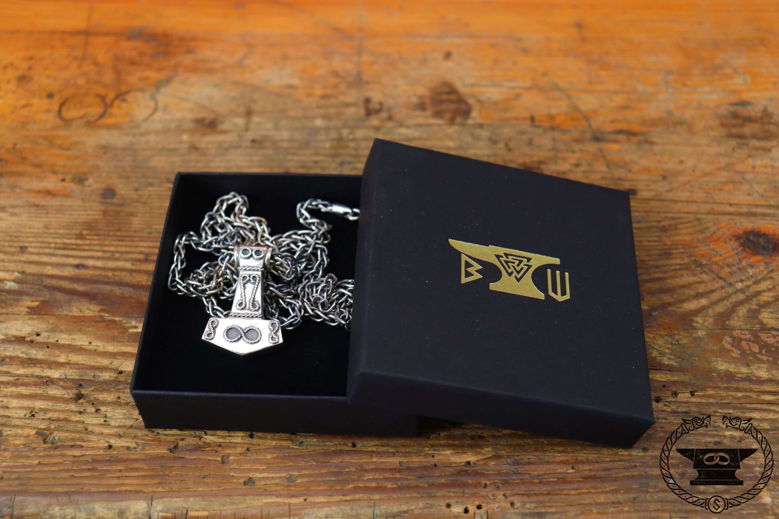 Thorshammer aus massivem Sterlingsilber mit einzigartigem Design, inspiriert von einem wikingerzeitlichen Fund aus Östergötland.