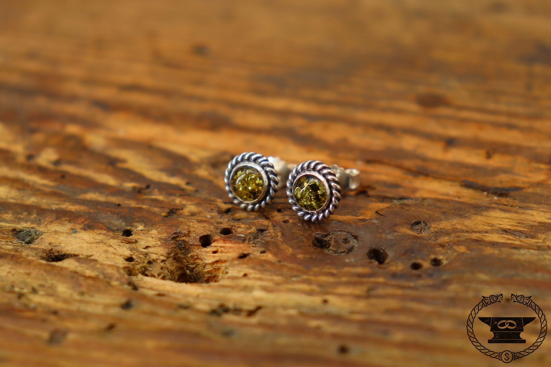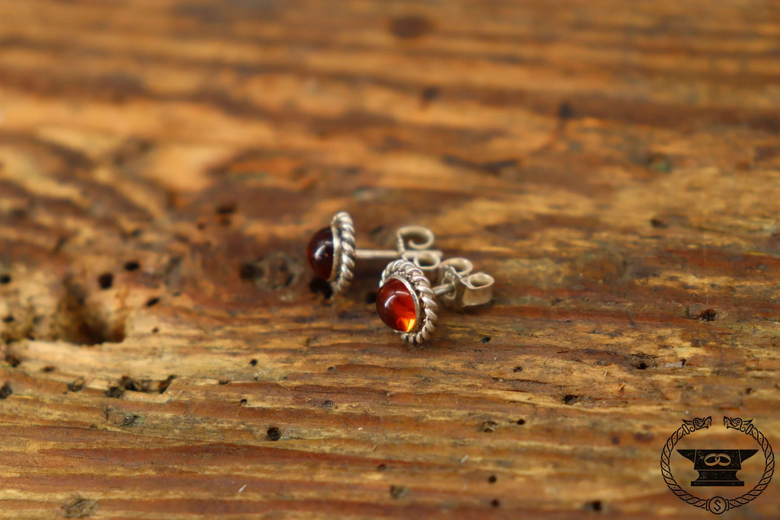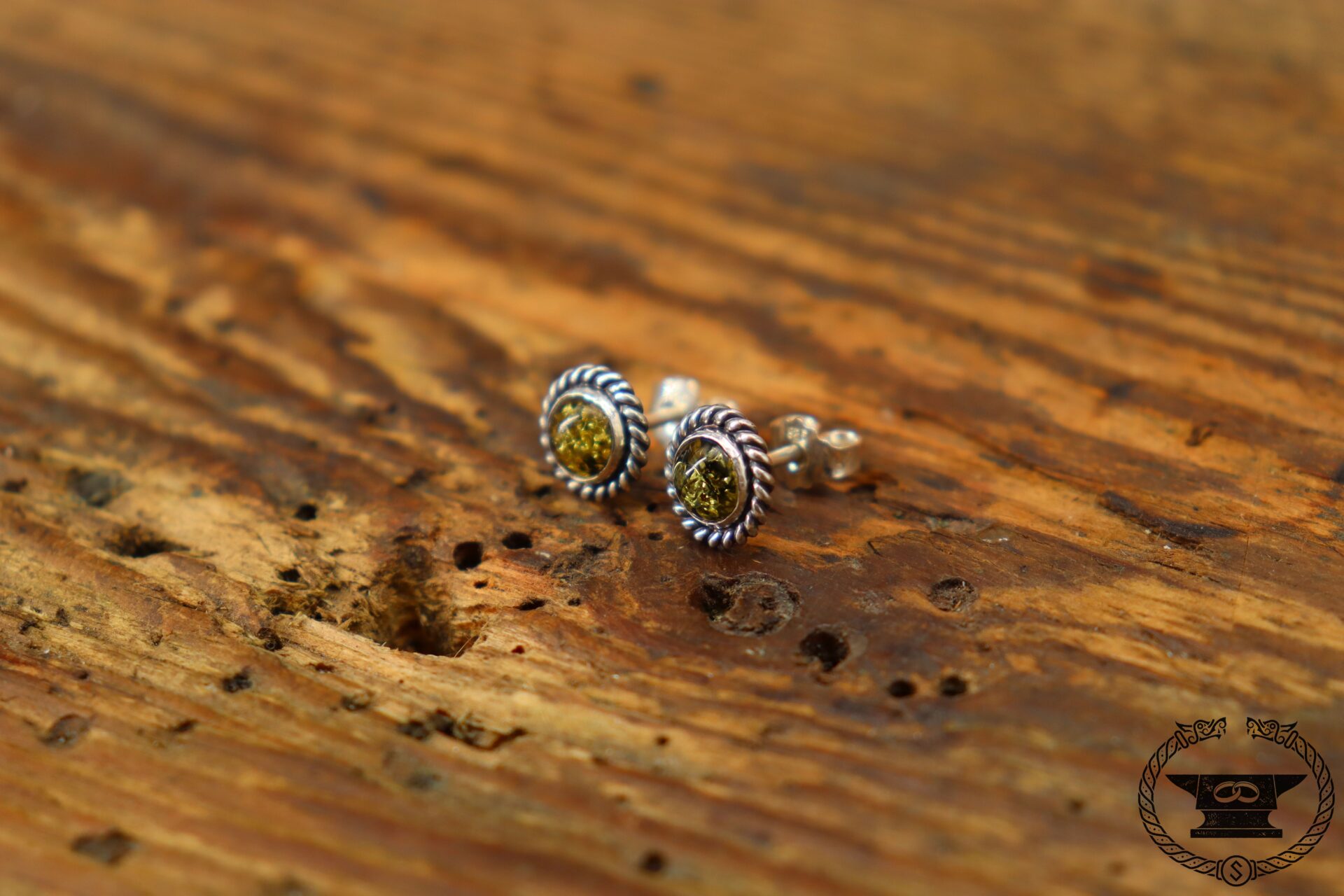 Handgemachte edle Ohrstecker aus Sterlingsilber verziert mit einem Edelstein in mittelalterlich anmutendem Design.