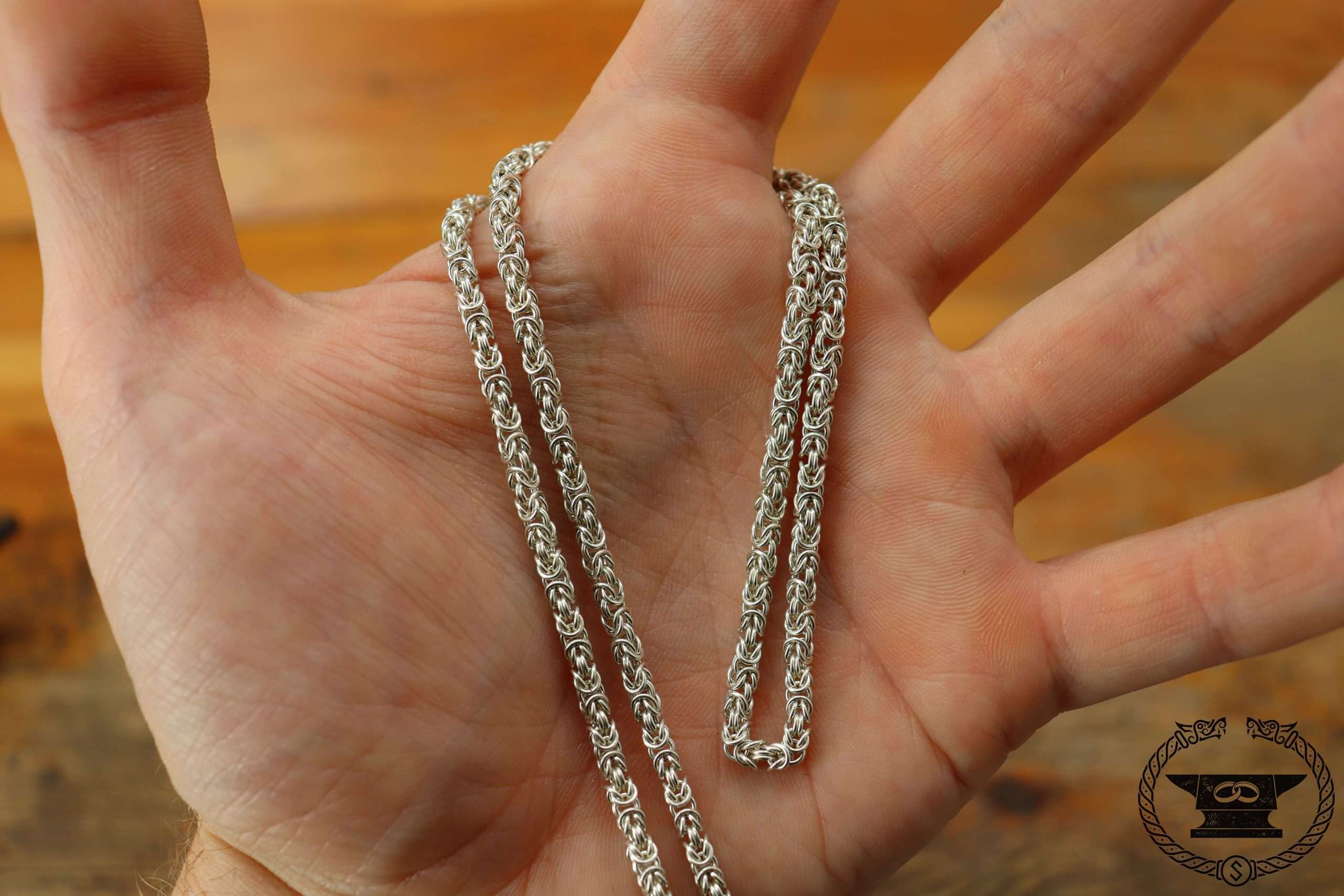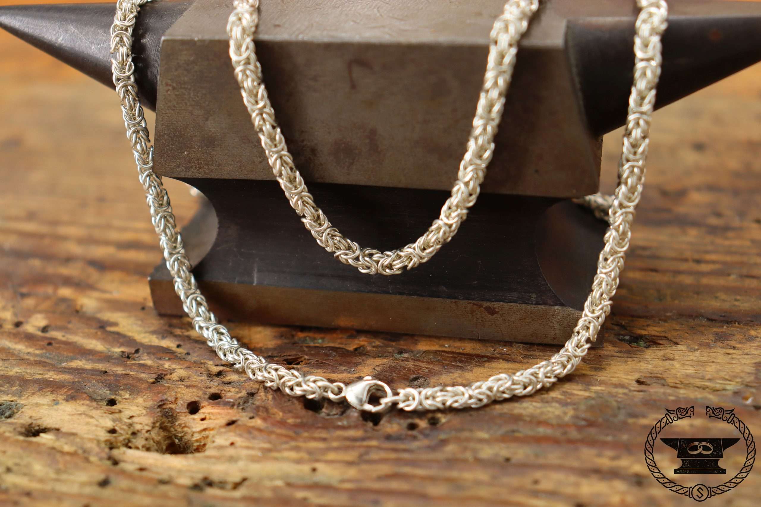 Eine sehr feine Königskette aus Sterlingsilber, deren Ösen einzeln per Hand gewickelt und gesägt wurden.