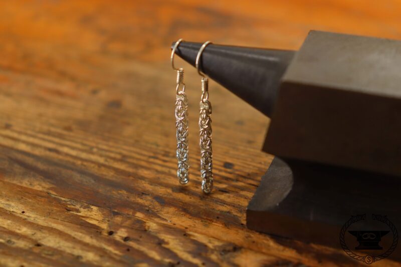 Elegante Ohrhänger aus Sterlingsilber im Königskette Muster komplett in Handarbeit gefertigt.